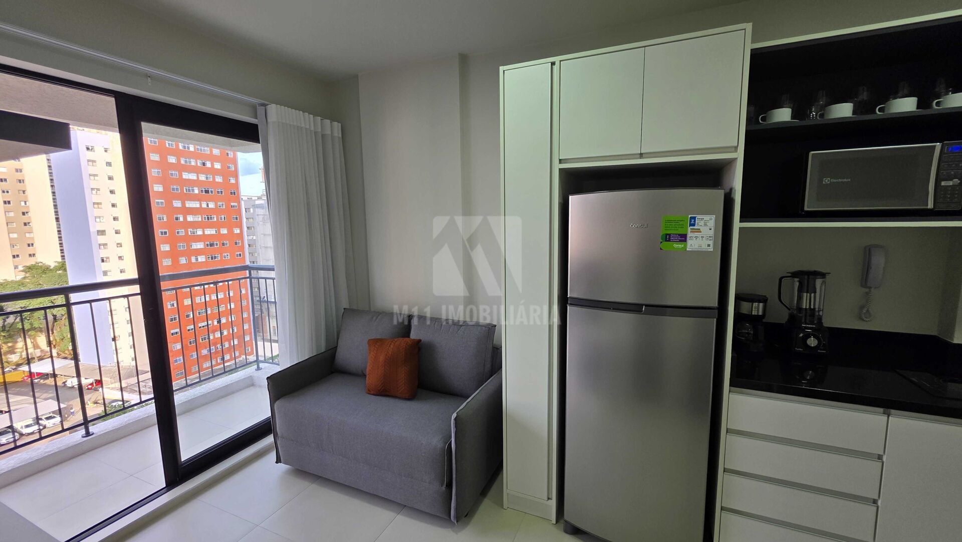 Apartamento 1 quarto mobiliado, cozinha, sala, varanda e ar condicionado no quarto e sala, todo mobiliado, pronto para morar